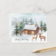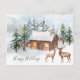 Carte Postale Forêt d'hiver, cerf, cabine de bois Noël