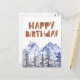 Montagne peinte à l'aquarelle unique, pins & bois -joyeux anniversaire- carte de vœux d'anniversaire.