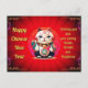 Célébrez le Nouvel An Lunaire avec notre Fortune Cat Carte postale de Nouvel An Chinois montrant Maneki Neko à l'aspect exotique avec une patte élevée vous souhaitant santé, richesse et bonheur pour le Nouvel An Chinois. Tous les textes sont personnalisables si vous avez un message d'accueil préféré pour vos amis proches et les membres de votre famille.