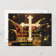 Grande croix dorée avec chapeau de bouffon et couronne dorée avec design typographique.