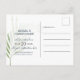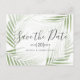 Cette moderne et élégante carte postale de sauvegarde de la date a un thème tropical avec une typographie élégante de style écrit à la main. Facile à personnaliser avec vos propres informations.