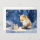 Step into a winter wonderland with this heartwarming fox illustration. Set beneath a snowy night sky, a curious fox gazes at a wrapped gift nestled in the snow, surrounded by quiet trees and falling flakes.