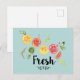 Une carte postale au design mignon avec agrumes croustillants - citrons, citrons et pamplemousses. La typographie branchée dit "Fresh" avec un joli trait de soulignement.
