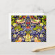 Carte postale avec la conception textile de William Morris Strawberry Thief (1883). Quatre oiseaux colorés volent des fraises au milieu d'un arrière - plan floral dynamique. Un cadeau merveilleux pour les amoureux des animaux et les amateurs d'art victorien.