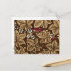 Carte postale motif Art Nouveau de plantes de fraises, aux feuilles, aux fleurs et aux baies, d'un design vintage en textile William Morris, numériquement rehaussée et colorée dans le bronzage et la crème, avec un arrière - plan marron chocolat foncé, et un accent de baies rose fuchsia