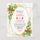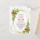 Cette carte postale mariage ludique et fantaisiste présente des fraises aquarelles, des marguerites et des feuillages sur un cadre géométrique doré. Le texte combine écriture manuscrite et polices serif pour un look élégant et moderne. C'est parfait pour un mariage d'été rustique.
