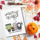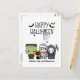 Saluez votre famille et vos amis avec cette carte postale de voeux d'Halloween éffrayante et fantaisiste ! Le design capte la magie étrange de la saison. Notre design comprend des illustrations d'une petite équipe d'arnaque mignonne avec un Frankenstein, une momie, une faucheuse Grim avec sa faucille, et un mignon chat noir portant un casquette citrouille. Un groupe de chauves-souris effrayantes survolent le "Happy Halloween" saluant dans une police amusante et les araignées éffrayantes sont occupées à fabriquer leurs toiles d'araignées. C’est un mélange parfait de ludique et de friandise ! Faites-le le vôtre : ajoutez nom et adresse, salutation personnelle, changez de police ou modifiez les couleurs pour correspondre à votre vibe éffrayante. Parcourez nos produits correspondants pour une soirée envoûtante qui hantera vos rêves (dans le meilleur des cas)! Personnalisez maintenant et laissez les peurs commencer! Contactez-nous pour d'autres personnalisations avant de passer une commande. Merci pour visiter notre magasin. Les Droits D'Auteur Tournent En Style.