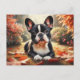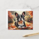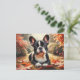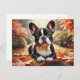 Un design charmant avec un Bulldog français ludique entouré de feuilles d'automne vibrantes, aux teintes chaudes orange, rouge et jaune. L'illustration fantaisiste saisit la joie de la saison d'automne, mêlant l'adorable attrait du chien à la beauté naturelle du feuillage d'automne.