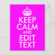 Créez votre propre "Conserver le calme et modifier le texte" avec votre message texte avec un arrière - plan magenta ou fuchsia et une couronne blanche avec du texte. Si vous avez besoin de réduire la taille de police pour correspondre à votre choix de mots, nous vous suggérons d'utiliser le système pour sélectionner la conception entière avant de modifier la taille. Cela maintiendra les dimensions de base de la conception du texte. Vous pouvez également changer l'arrière - plan rose chaud.