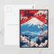 Découvrez la beauté du Japon avec cette superbe carte postale de voyage vintage. Avec le mont Fuji emblématique et de délicates fleurs de cerisier, cette œuvre d'art graphique est parfaite pour la décoration intérieure ou comme cadeau pour les Japanophiles.