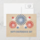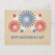Hip et tendance Funky Quart de Juillet Fireworks Carte Postale avec des graphiques de feux d'artifice rouge, blanc et bleu. Cette carte postale cool est une merveilleuse façon de souhaiter un Joyeux 4 juillet à vos amis et à votre famille ! Customisez avec votre propre salutation et message personnalisé! Cliquez sur le bouton "Customiser" pour modifier/supprimer du texte ou modifier les polices et les couleurs du texte.