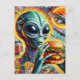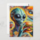 Carte Postale Funky Alien Mange Cheeseburger et Fries Collage