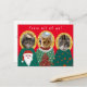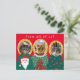 Trois chats en haloed dans des pulls de Noël moches envoient les voeux de la saison. Si le pur plaisir et l'humour de Noël kitsch est plus votre style que des paysages d'hiver paisibles, cette carte est pour vous. Personnalisez les visages de chat avec vos propres visages de chat préférés. Envoyez un cadeau de vacances !