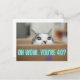 La carte postale d'anniversaire amusante présente la photo d'un chat curieux qui regarde à l'extérieur de la boîte de carton avec le texte néon qui dit "Oh wow. Vous avez 40 ans ?" Texte "happy anniversaire" personnalisable sur le dos