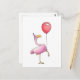 Featuring a pink flamingo wearing a party hat and holding a red balloon, this playful design is perfect for anyone who loves animals, quirky art, and cheerful birthday wishes.