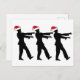 Des zombies en chapeaux rouges du Père Noël marchant dans la ligne avec les bras morts ou étirés devant eux. Une superbe carte postale de Noël zombie pour un fan d'horreur.