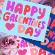 Carte Postale Galentines Jour Bulles Lettres rose Curvy Retro