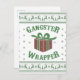 Gangster Wrapper dans un style sucré moche en vert et rouge orné de rennes sautants, de flocons de neige et d'un grand cadeau enveloppé rouge.