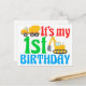 Carte Postale Garçon 1er anniversaire engin de construction Mign