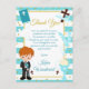 Garçon aux cheveux roux mignon design de première communion bleue avec fond rayé bleu et confettis en feuille d'or. Graphismes par Mujka et KlouiseDigiArt sur Etsy.