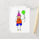 Belle illustration fantaisiste d'un petit garçon de bande dessinée allant à une fête d'anniversaire portant son casquette de fête et tenant son ballon. Image disponible sur divers cadeaux et produits.