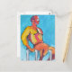 Un maître nageur musclé assis sur un pied de maître nageur avec un ciel bleu vif en arrière - plan. Peinture acrylique sur papier de l'artiste gay Shungaboy.