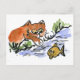 Carte Postale Garden Pond et Curious Kitten