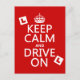 On peut lire "Keep Calm" et "Drive On", dans le style de l'affiche classique "keep calm". Il y a deux plaques L à côté des mots. C'est un design merveilleux, et fait de grandes cartes et des cadeaux pour les apprenants et les instructeurs de conduite. Vous pouvez changer la couleur de l'arrière - plan très facilement, il suffit d'appuyer sur la personnaliser. Si vous désirez d'autres changements - ou pour voir la conception d'un autre produit - ou si vous avez des questions, s'il vous plaît contactez-moi par mon magasin et je vous aiderai de toutes les façons possibles. Merci beaucoup d'avoir cherché.