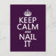 Ceci dit Keep Calm and Nail It, dans le style de l'affiche classique garder calme. Il n'y a pas de décoration, et j'ai gardé la couronne au sommet. Il fait un beau design propre, qui est populaire avec les salons à ongles et les salons de beauté, mais aussi comme un message de motivation pour essayer votre meilleur et de le faire faire. Vous pouvez changer la couleur de l'arrière - plan très facilement, il suffit d'appuyer sur la personnaliser. Si vous désirez d'autres changements - ou pour voir la conception d'un autre produit - ou si vous avez des questions, s'il vous plaît contactez-moi par mon magasin et je vous aiderai de toutes les façons possibles. Merci beaucoup d'avoir cherché.