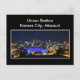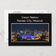 La gare Union Station de Kansas City célèbre les victoires de l'équipe de baseball de la ville après la saison avec un éclairage bleu. Ouverte en 1914, Union Station dessert Kansas City, Missouri, et la région métropolitaine environnante. En 1985, puis restauré, réouverture en 1999 sous la forme d'une série de musées et autres attractions publiques. En 2002, Union Station a vu son retour comme une gare quand Amtrak a commencé à fournir des services de transport en commun et est depuis devenu la deuxième gare du Missouri. La fontaine, qui porte le nom de Henry Wollman Bloch, était un cadeau à la ville au nom du co-fondateur de H&R Block, Inc. Elle comprend 232 jets disposés en trois anneaux concentriques dans une ellipse de granit noir. Une fine couche d'eau sur le granit plat crée un miroir qui reflète l'architecture monumentale de chaque côté. Un ordinateur chorégraphie un motif d'affichage en constante évolution. Chaque heure et demie, un "high show" de cinq minutes présente une célébration de l'eau en mouvement. La fontaine a été dessinée par WET Design, les créateurs des fontaines Bellagio à Las Vegas.