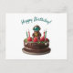 Cette carte postale présente une illustration d'un gâteau d'anniversaire aux fraises au chocolat avec une figurine d'astronaute sur le dessus. C'est une excellente carte pour célébrer l'anniversaire de votre petit-enfant qui rêve de devenir astronaute.