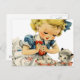 Carte Postale Gâteau d'anniversaire rétro fille Cake Cat Enfants