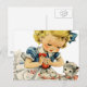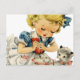 Carte Postale Gâteau d'anniversaire Rétro Fille Chat Enfants Des