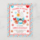 Cette invitation mignonne et festive présente une tasse à pois bleus avec un adorable manchot. Elle est remplie de chocolat chaud, de crème fouettée et de paillettes. À côté se trouvent des biscuits en forme d'étoile et de flocon de neige, des tourbillons de bonbons et des baies de houx. Le texte combine des polices grasses et sans serif pour un look stylé et moderne. C'est parfait pour une fête d'anniversaire sur le thème de Noël.