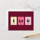 Do you want a fun retro vintage card to send geeky, nerdy, fan de The Big Band Theory significant other, friend, family member or colleague this Valentine's Day ? Then this is the greeting card for you. One of our very clever (and nerdy) designers cams up with this funny I Love You design using element from the periodic table. Geeky enough for you ! Éléments from the periodic table are shown in sassy pink and violet colors over a deep red background. Super cool, super retro ! addition to the greeting card we have a postcard along with matching postage. Order now so don't.