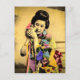 Carte Postale Geisha vintage avec un mignon Kitten Vieux Japon