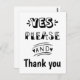 Oui s'il vous plaît et merci - une typographie amusante, décalée et unique carte budget RSVP noir et blanc, que vous pouvez utiliser pour n'importe quelle occasion = RSVP d'anniversaire, RSVP de mariage, ou toute acceptation de la partie.