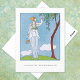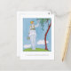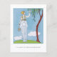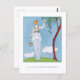 Carte postale avec l'illustration de mode française La Saison des Prunes Mirabelles (La Saison de la Plum Mirabelle) (1914) de George Barbier (1882-1932). Une femme vêtue d'une robe blanche feuilletée ramasse des prunes d'un arbre. Une image numériquement restaurée de la Gazette du Bon Ton.