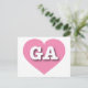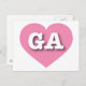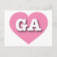 Cette carte postale est dotée d'un coeur rose vif contenant les lettres coques maures, blanches et audacieuses GA, l'abréviation officielle pour la Géorgie, l'Etat de la pêche. Le verso de la carte postale est vide, en attendant vos sentiments manuscrits ou le texte customisé.