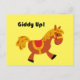 Carte Postale Giddy Up Cheval Brown à selle, Caricature mignonne