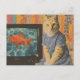 Carte Postale Ginger Cat With Goldfish on TV Retro Collage