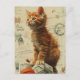 Carte Postale Ginger Kitten Yarn Collage Médias mixtes