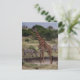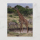 Scène africaine classique de girafe et de zèbre entourant un trou d'eau peu profond dans le Masaï Mara, Kenya. Carte postale entièrement personnalisable.