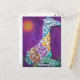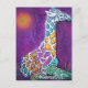 Un bébé girafe arc-en-ciel coloré peint sur un Arrière - plan texturé violet. Art original de Laura Barbosa.