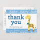 Carte Postale Giraffe en Baby shower bleu Bow pour Merci garçon