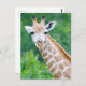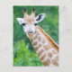 Cette carte postale comporte une prise de tête / portrait / gros plan d'une girafe.