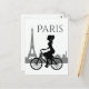 Carte Postale Girl and Bicycle Paris Tour Eiffel