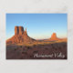 Cette carte postale présente l'emblématique West Mitten Butte et East Mitten Butte, majestueux dans la vallée du Monument. Ces formations de grès de renommée mondiale créent un paysage désertique spectaculaire et inoubliable, immédiatement reconnaissable à d'innombrables films et photographies. C'est une carte idéale pour les amateurs de paysages occidentaux américains, de merveilles naturelles et de destinations touristiques emblématiques.