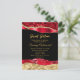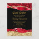 Cette invitation de fête d'anniversaire sweet sixteen élégante et glamour présente des larmes de glamour scintillant faux rouge et or sur fond noir. Le texte combine une écriture manuscrite et des polices sans empattement modernes pour un look classe et sophistiqué.