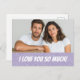 "Make your Valentine’s Day extra special with this personalized Valentine’s card featuring a sparkling purple glitter background, romantic heart accents, and the loving message “I love you so much.” Customize it with your favorite couple photo to create a truly unique and meaningful keepsake. The soft pink script and shimmering details add a magical, romantic touch, making this card perfect for celebrating your love in a personal and unforgettable way. Ideal for couples, anniversaries, or Valentine’s Day, this card turns your favorite memory into a heartfelt gift."